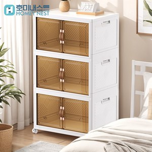 Homey Nest 대용량 리빙박스 가정용 다용도 이동식 폴딩 수납 정리함, 화이트, 3단