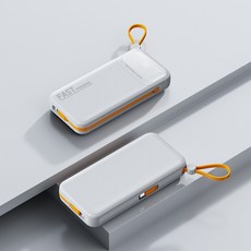 보조배터리 고속 충전 대용량 27000mAh 신고 없이 바로 기내 반입 가능 Lightning Type-C 충전 케이블 내장 야외 캠핑이 더 안심, 흰색