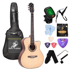스위프트홀스 OM 컷어웨이 바디 입문용 통기타 + 구성품 10종, BL281, 혼합색상, 1세트