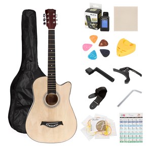 ADM 포크 기타 38인치 컷어웨이 스타터 세트는 입문자가 쉽게 연주를 시작할 수 있도록 필요한 액세서리와 함께 구성된 기본형 통기타 패키지입니다.