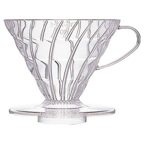 - 하리오 V60 드리퍼 원추형 60° 각도 설계로 물이 가운데로 흐르며 추출이 잘 되도록 돕는 구조