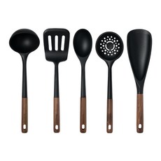 트루쿡 북미산 월넛 실리콘 조리도구 5종 세트, 1세트, 블랙, 국자 + 뒤집개 + 서빙스푼 + 스키밍국자 + 멀티스푼