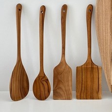 몽다름아 100% 아무것도 칠하지 않은 천연 티크우드 나무주걱 뒤집개 조리도구 스푼 4종세트 집들이선물, 1세트, 계란말이 뒤집개 L+볶음스푼+서빙스푼+뒤집개 M, 1개