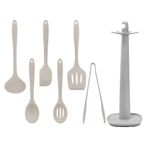 라이트 컬러의 실리콘 소재로 제작된 키친툴 세트로 내열성과 유연성이 뛰어나 다양한 조리에 안전하게 사용할 수 있으며 국자, 뒤집개, 스푼 등 필수 구성 7종으로 이루어져 주방 활용도가 높고 깔끔한 디자인으로 정리와 보관이 편리한 제품이다.