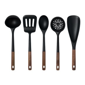 북미산 월넛 원목 손잡이와 실리콘 소재가 결합된 조리도구로 내열성과 위생성이 뛰어나며 국자, 뒤집개, 서빙스푼, 스키밍국자, 멀티스푼 구성으로 다양한 요리에 활용 가능하고 코팅 팬에도 손상을 주지 않아 실용적인 주방용 세트이다.